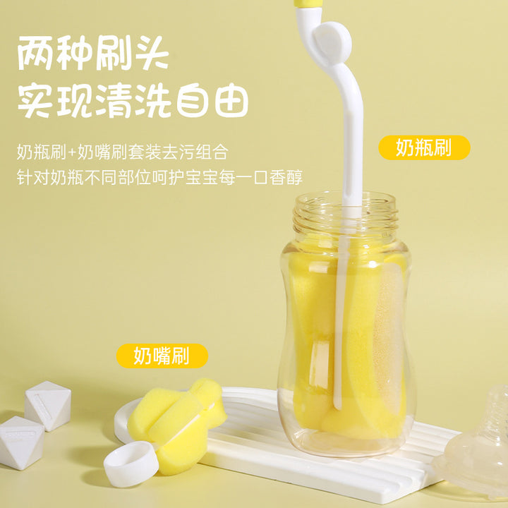 Factory direct baby bottle brush, sponge brush, pacifier brush 360 degree rotating bottle cleaning brush