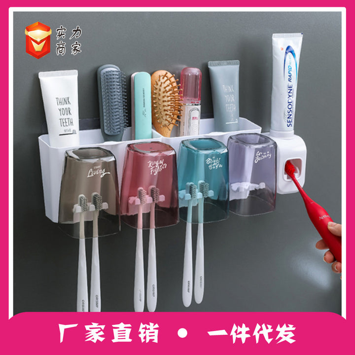 Factory direct multi-functional toothbrush holder round transparent cup toothbrush rack non-punching suction wall washing set