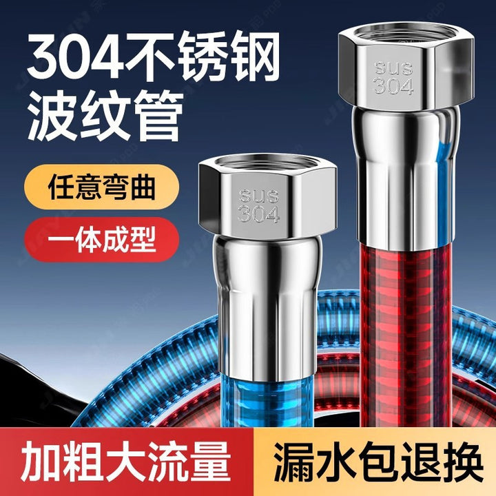 Factory direct sales 304 stainless steel bellows 4 points gas water heater hot and cold water inlet hose toilet pipe metal