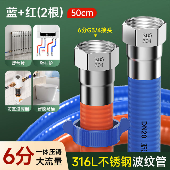 Factory direct sales 316 corrugated pipe stainless steel inlet and outlet pipe water heater hot and cold 6 points thickened hose connecting pipe