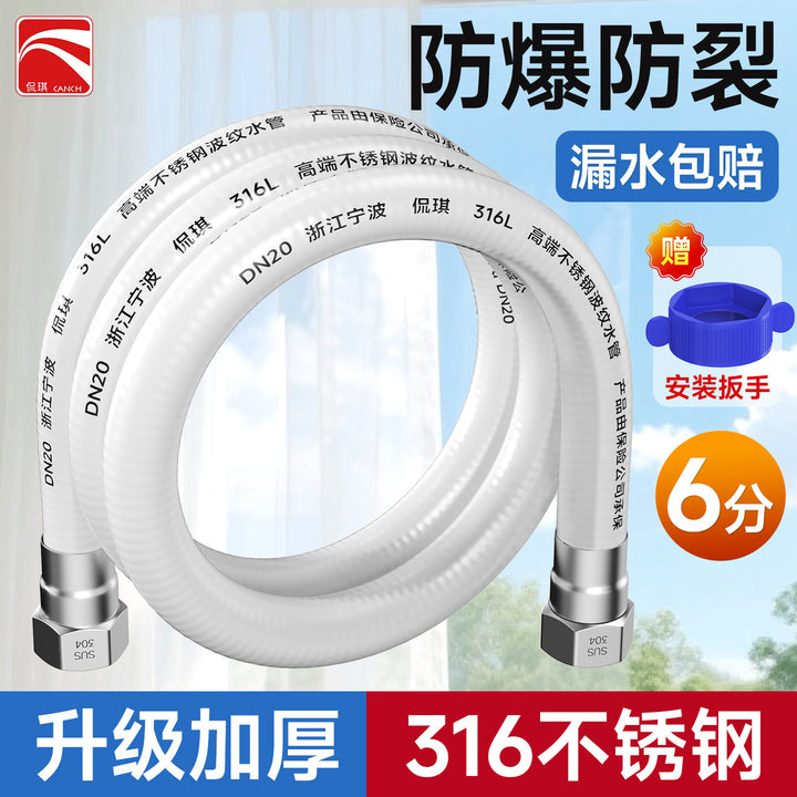 Factory direct sales 316L stainless steel bellows water heater hot and cold water inlet hose 6 points explosion-proof metal connecting pipe