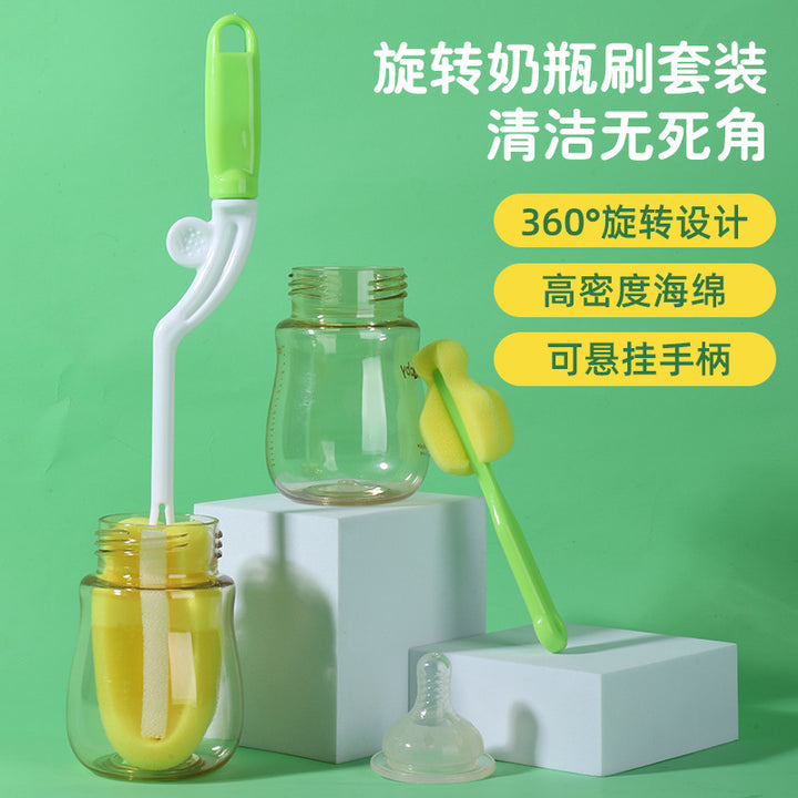 Factory direct sales baby bottle brush sponge brush pacifier brush set 360 degree rotating cleaning brush