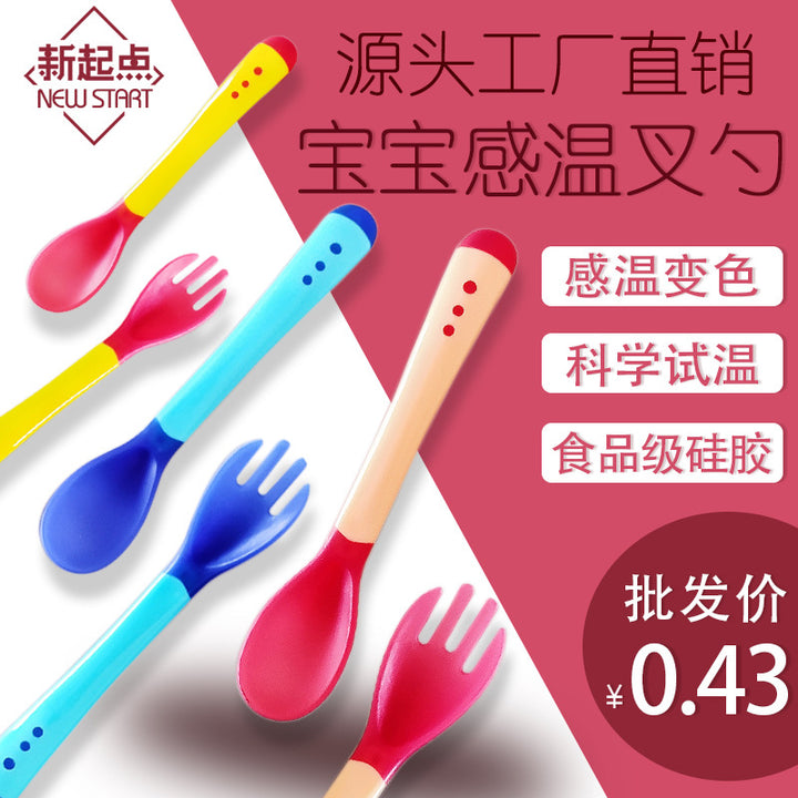 Factory direct sales baby temperature-sensing spoon, baby soft head spoon feeding medicine spoon temperature-sensing spoon color-changing spoon and...