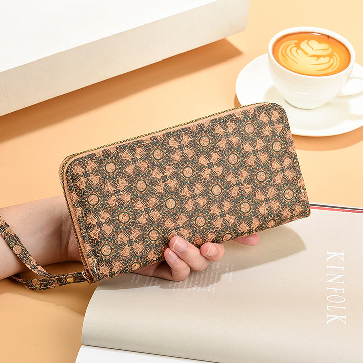 Factory direct sales cross-mirror PU cork grain wallet long ciphertext delivery zipper wallet...