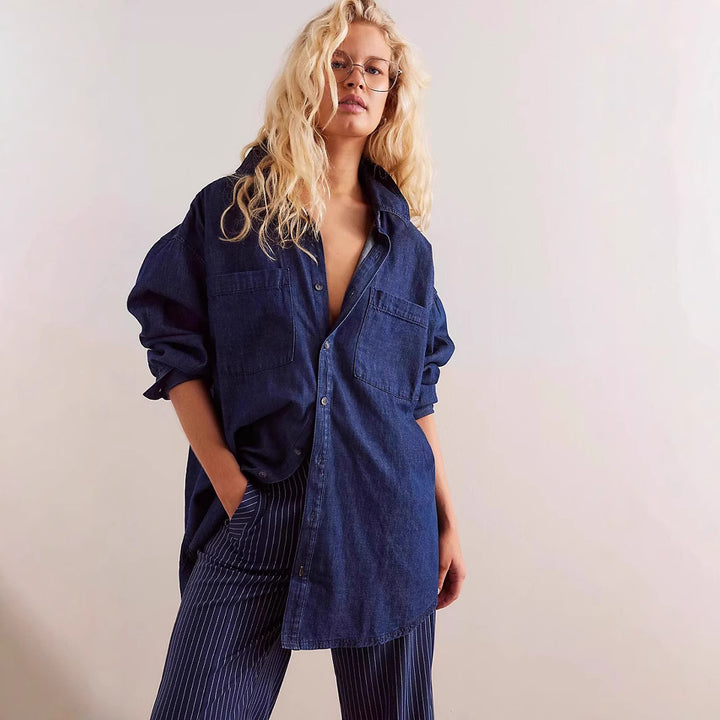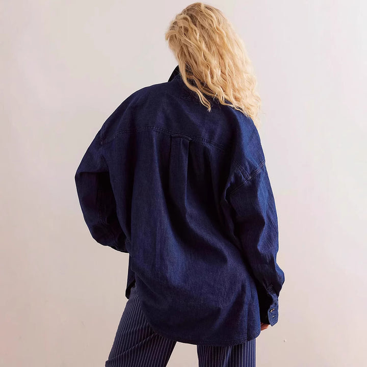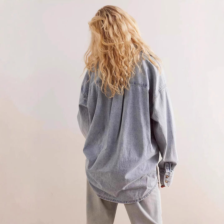 Factory direct sales European and American loose retro casual fashion denim shirt, women