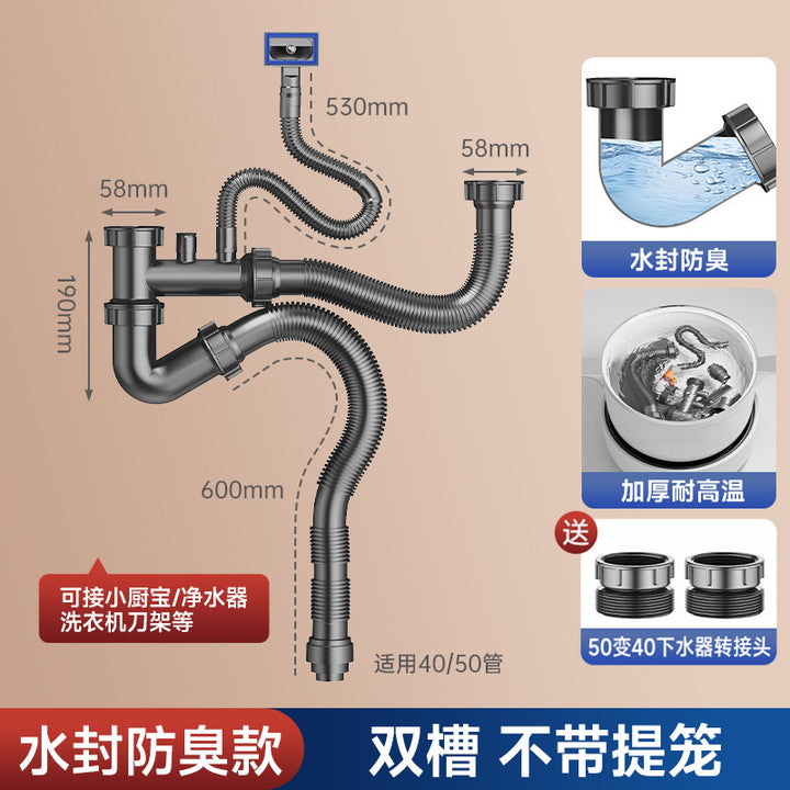 [Type A] Water seal deodorant gray double-slot sewer pipe (without lifting cage), send adapter, send overflow set, [Type A] Water seal deodorant gray double-slot sewer pipe (110 cage + 110 cage) to send overflow set, [Type A] Water seal deodorant gray double-slot sewer pipe (110 cage + 140 cage) overflow set, [Type A] Water seal deodorant gray double-slot sewer pipe (140 cage + 140 cage) overflow set, 【升级B款】透明可直视灰色双槽下水管(不带提笼)送转接头 送溢水套装, 【升级B款】透明可直视灰色双槽下水管(110提笼+110提笼)送溢水套装, 【升级B款】透明可直视灰色双槽下水管(110提笼+140提笼)送溢水套装, 【升级B款】透明可直视灰色双槽下水管(140提笼+140提笼)送溢水套装, 【C款】水封防臭单槽灰色下水管(不带提笼)送转接头 送溢水套装, 【C款】水封防臭单槽灰色下水管(110提笼)送溢水套装, 【C款】水封防臭单槽灰色下水管(140提笼)送溢水套装, 【升级D款】透明可直视单槽灰色下水管(不带提笼)送转接头 送溢水套装, 【升级D款】透明可直视单槽灰色下水管(110提笼)送溢水套装, 【升级D款】透明可直视单槽灰色下水管(140提笼)送溢水套装, 单头灰色尾管 40mm口60CM管, Single head gray tail pipe 40mm port 80CM pipe, Single head gray tail pipe 40mm mouth 1.2 meters pipe, Single head gray tail pipe 50mm port 60CM pipe, Single head gray tail pipe 50mm port 80CM pipe, Single head gray tail pipe 50mm mouth 1.2 meters pipe, Double head gray tail pipe | 58mm port 40CM pipe, Double head gray tail pipe | 58mm port 60CM pipe, 双头灰色尾管|58mm口80CM管, 升级双杯不锈钢110mm提笼, 升级双杯不锈钢140mm提笼, 升级双杯不锈钢下水器110/58mm+50内转40外转接头, 升级双杯不锈钢下水器140/58mm+50内转40外转接头 |