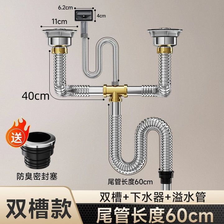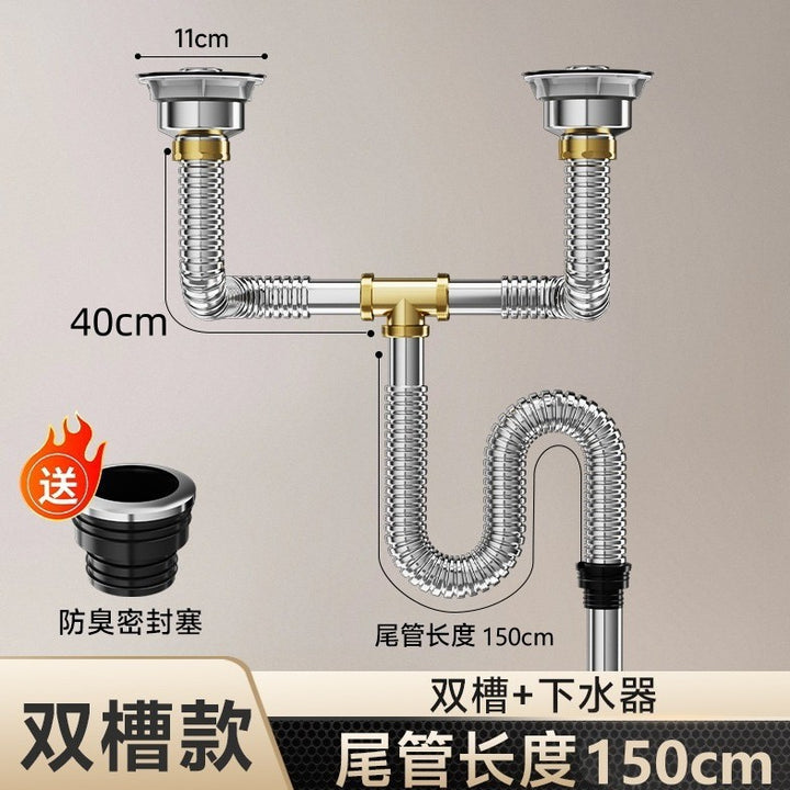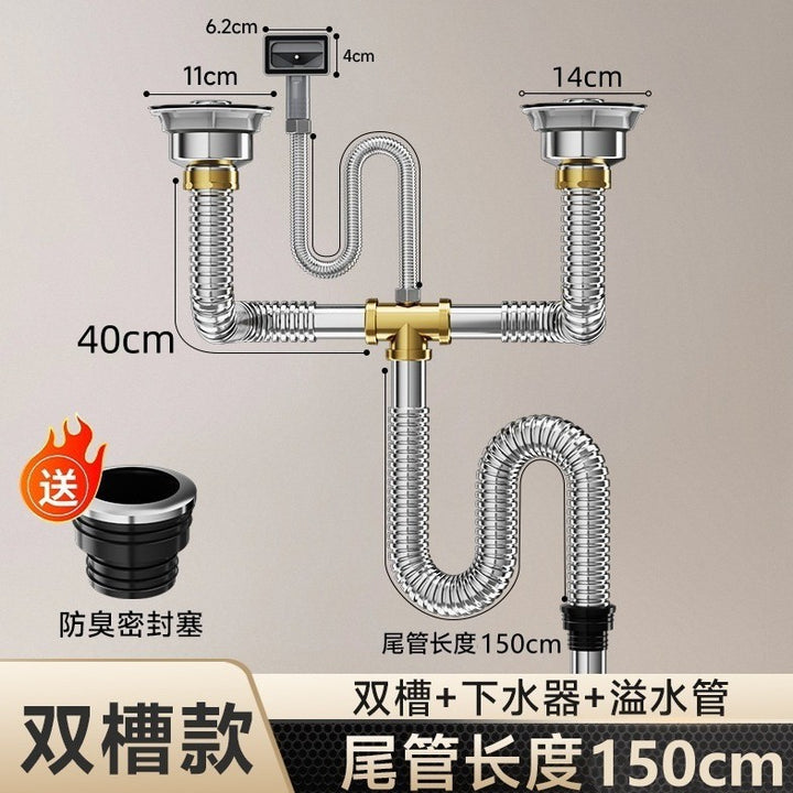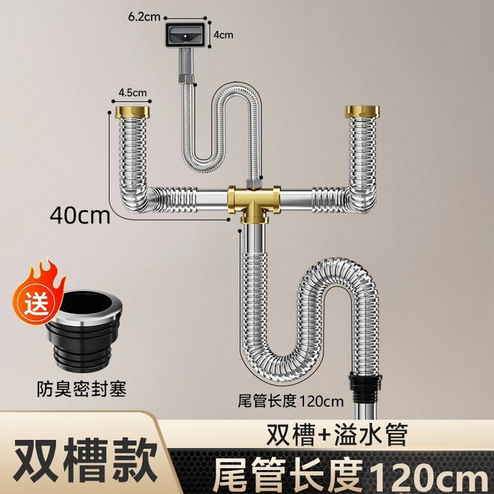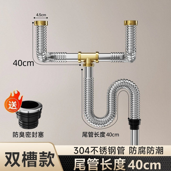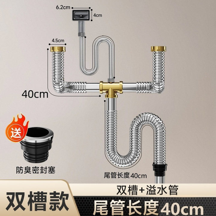 Factory direct sales, kitchen wash basin sewer pipe, stainless steel double sink, sink drain pipe, sewer deodorant