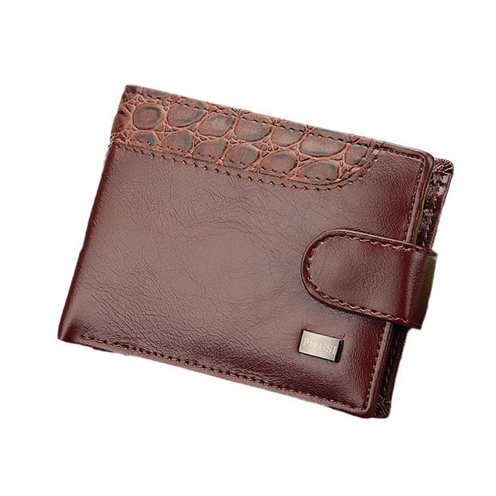 Factory direct sales, men's small card bag, European and American buckle short money ticket clip, splicing change bag, horizontal leather wallet, men