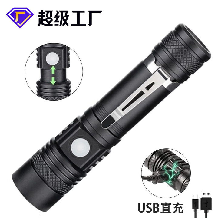 Factory direct sales mini USB strong light flashlight, hot-selling T6 flashlight pen clip portable flashlight