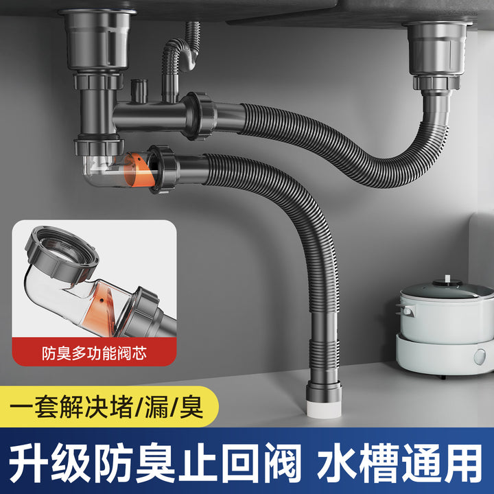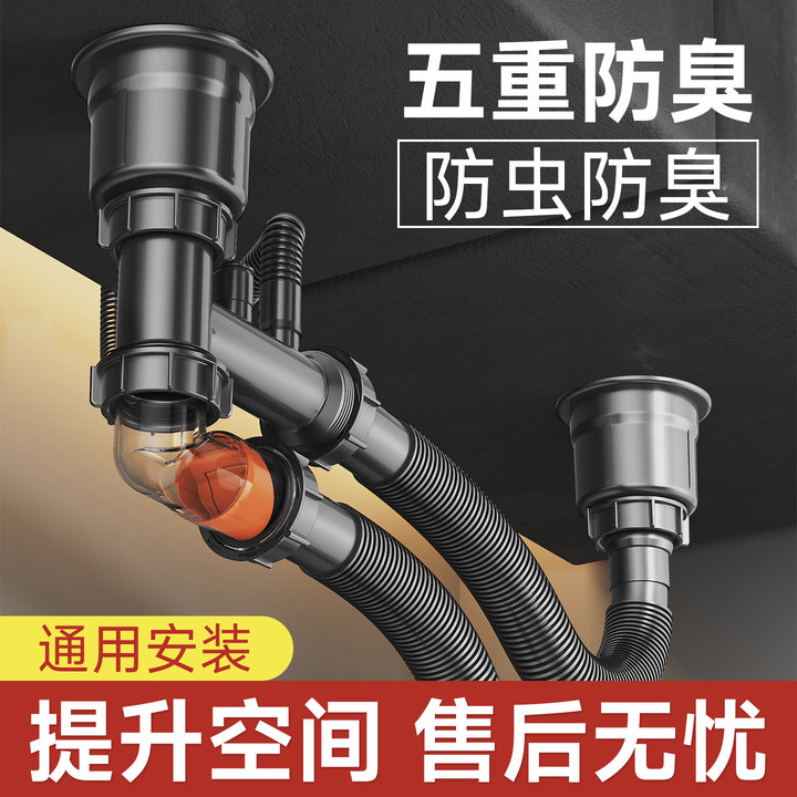 Factory direct sales sewer pipe single slot double basin vegetable sink drain pipe super space saving sink drain pipe sewer