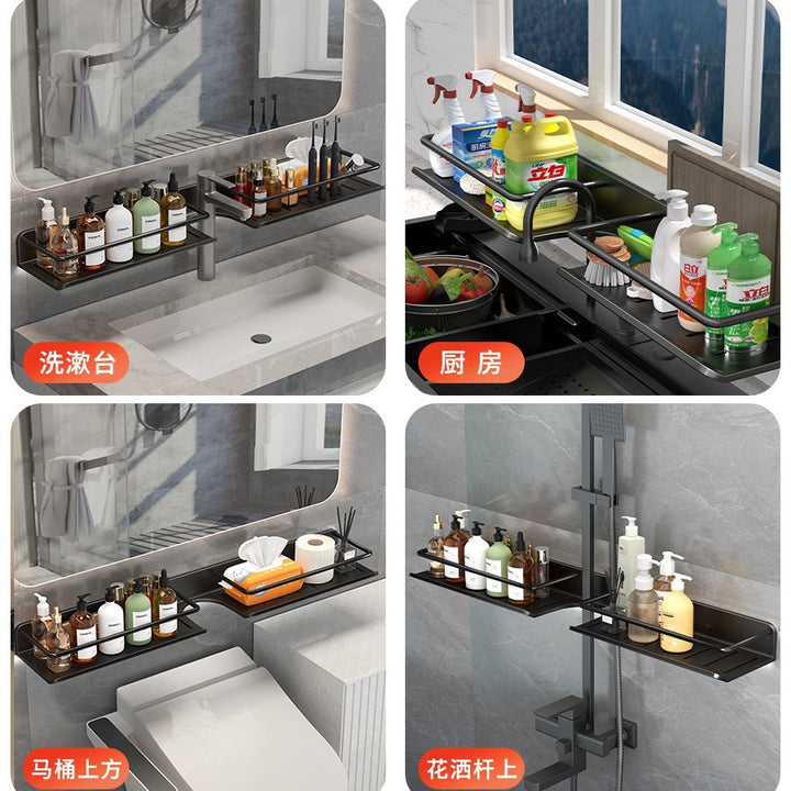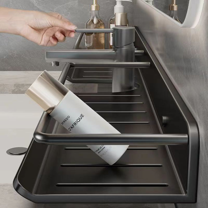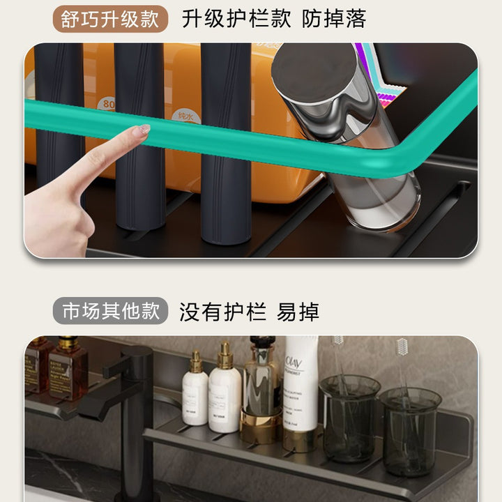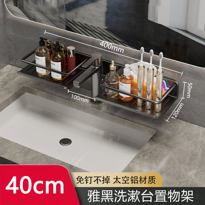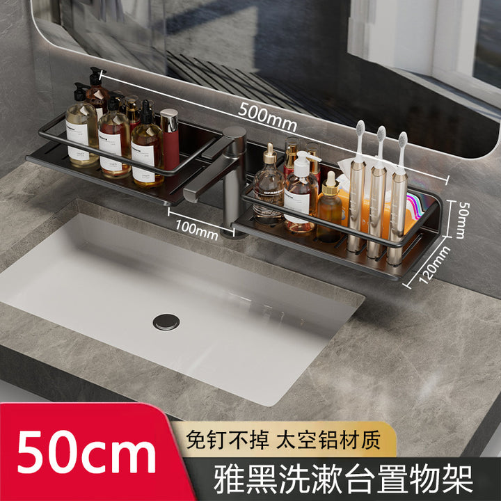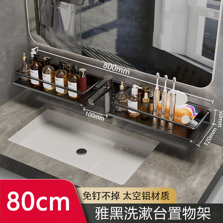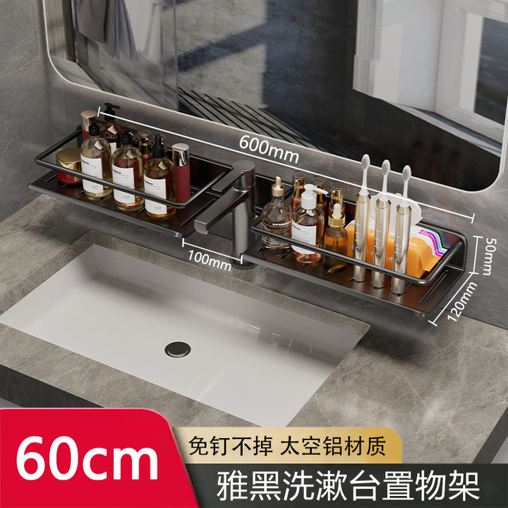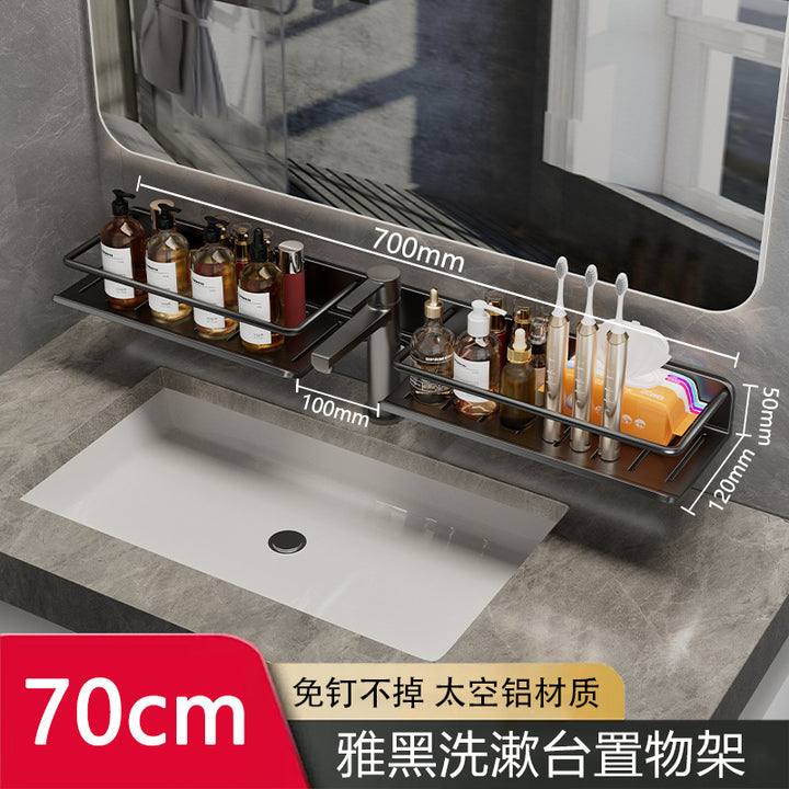 Factory direct sales space aluminum bathroom rack mirror front frame faucet cosmetic storage rack free punching wall hanging