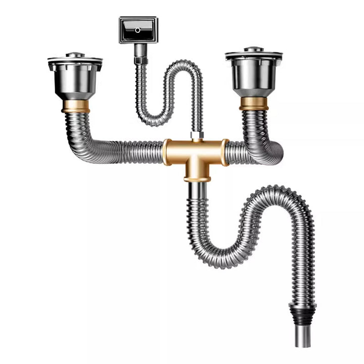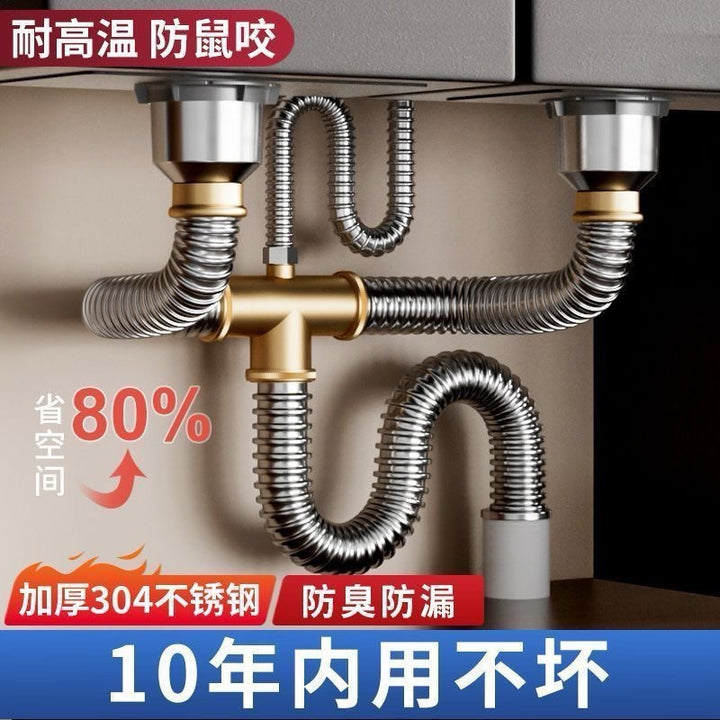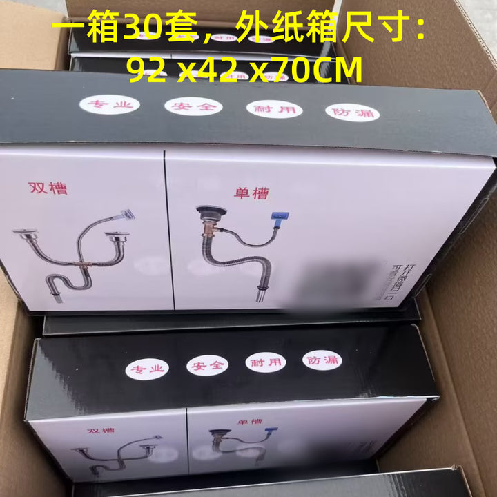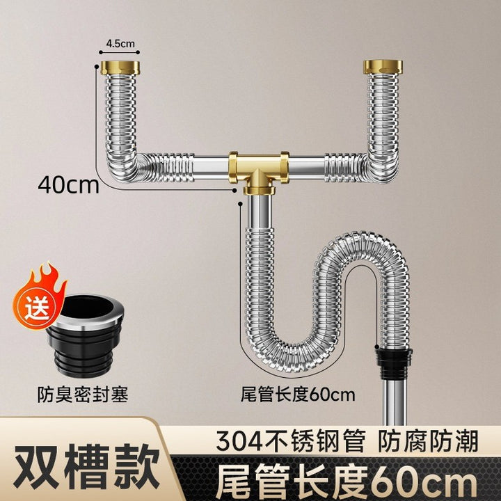 Factory direct sales stainless steel kitchen sink vegetable basin sewer pipe drain pipe double slot thickened sewer deodorant