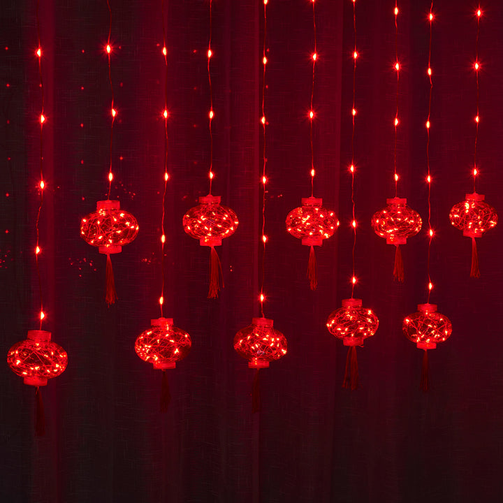 Factory direct supply Spring Festival, New Year's fringed red lanterns, curtain lights, home balcony, courtyard, Chinese New Year decorative lights