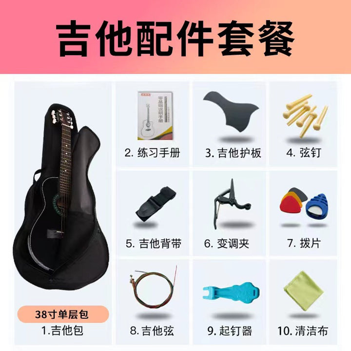 Factory Guitar Direct Sales 38-inch Folk Popularization Beginners Entry Novice Folk Guitar Male and Female Students Practice the Piano