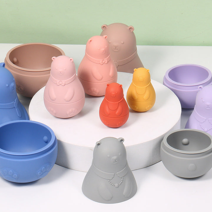 Factory new silicone matryoshka doll early education puzzle building block toy baby silicone assembled bear doll