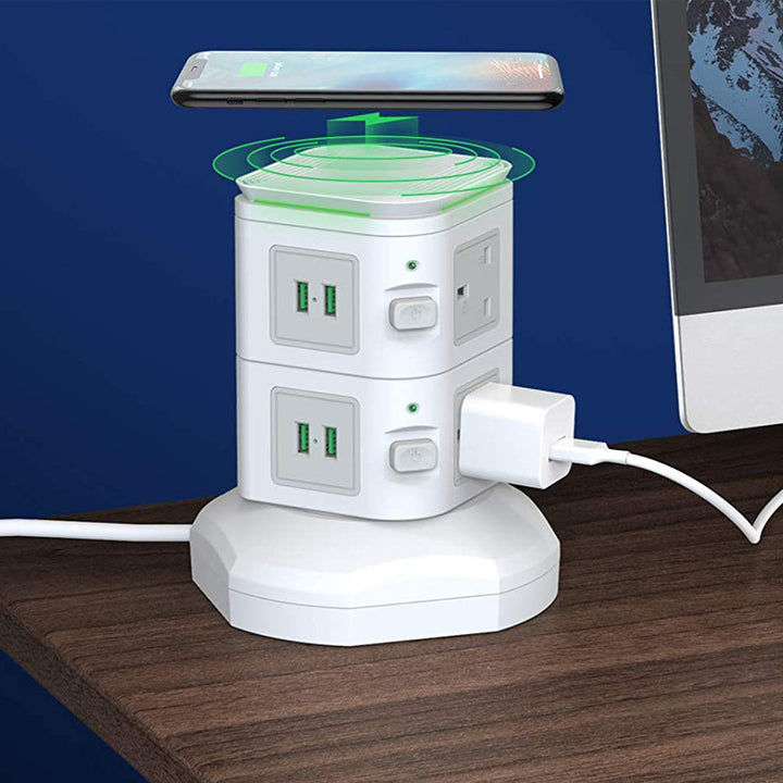 Factory production wireless charging plug-in board power strip can rotate take-up wireless charging plug-in USB smart socket