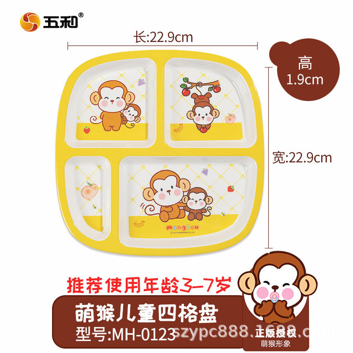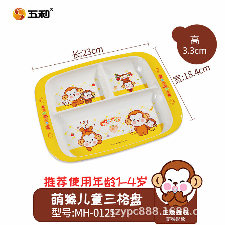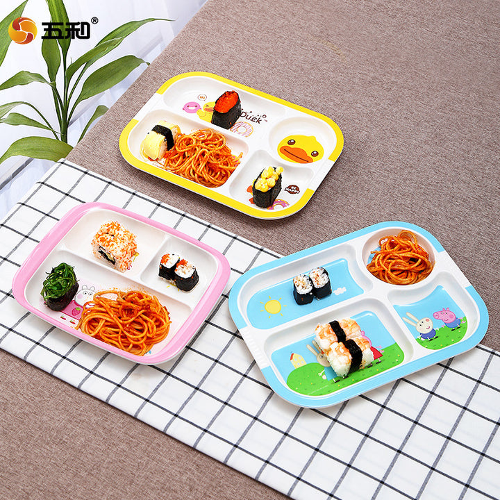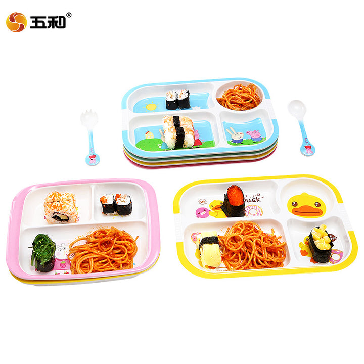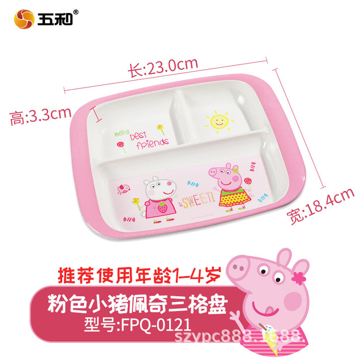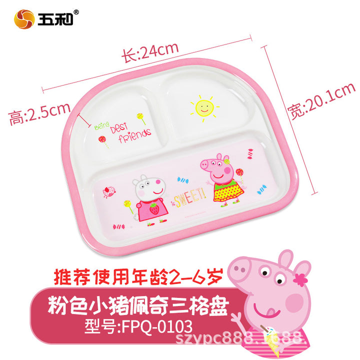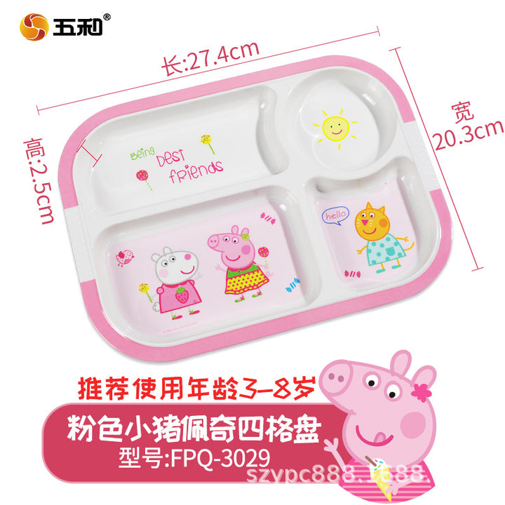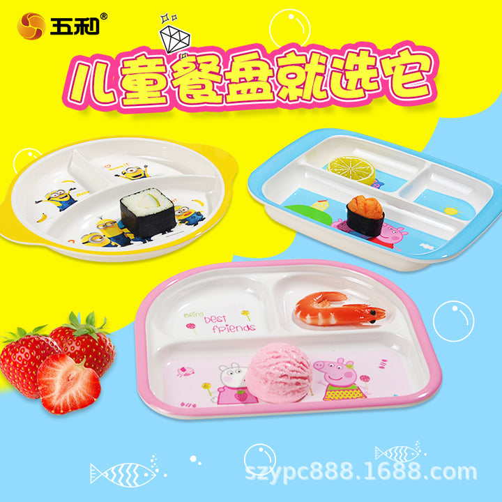 [Factory Straight Hair] Children's Cartoon Tableware Cartoon Separation Tableware Baby Grid Plate Children's Plate Tray