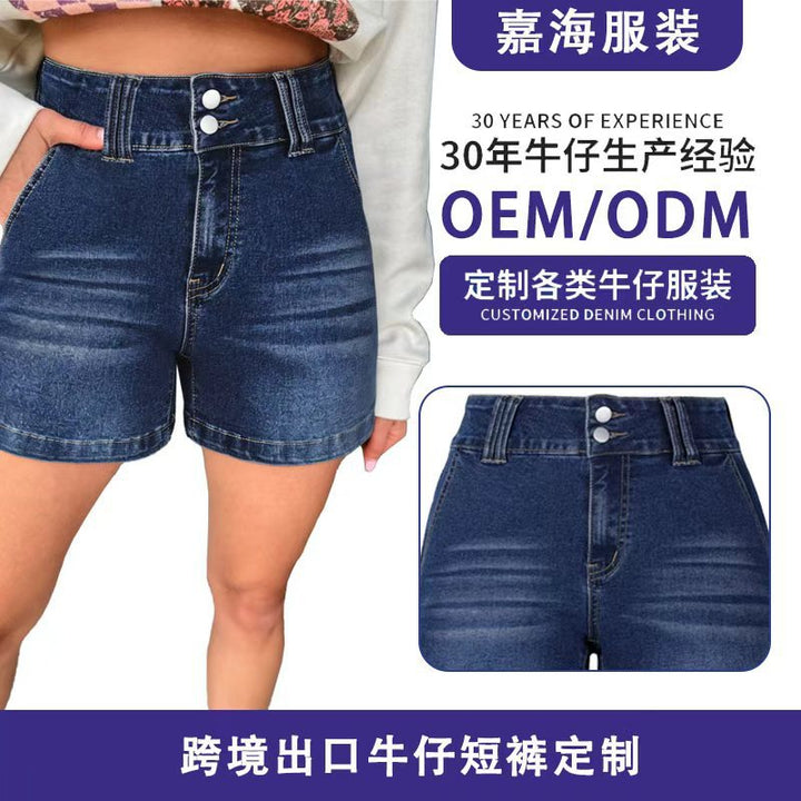 Factory wholesale American retro dark blue low-rise denim shorts processing custom Spice Girl tight hip-wrapped and thin pants