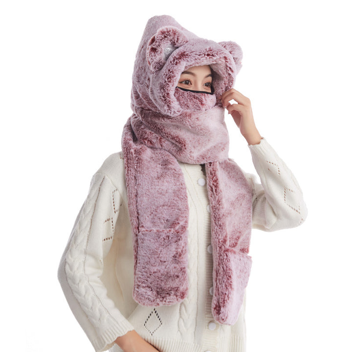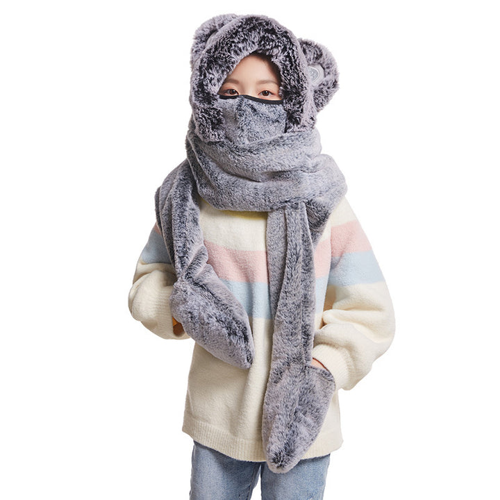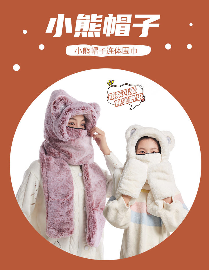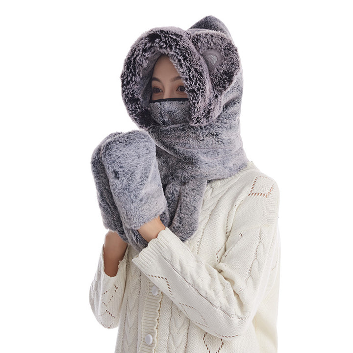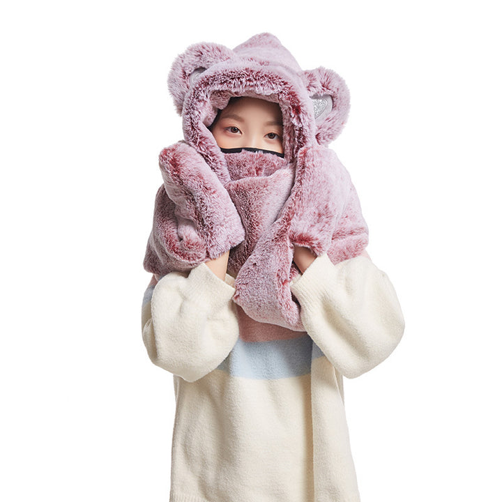 Faded hair imitation rabbit hair Lei Feng hat women's hat scarf gloves integrated parent-child scarf gloves three-piece set with mask