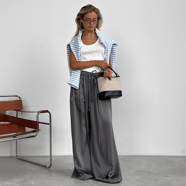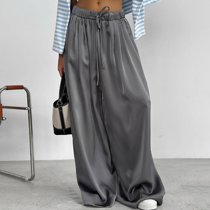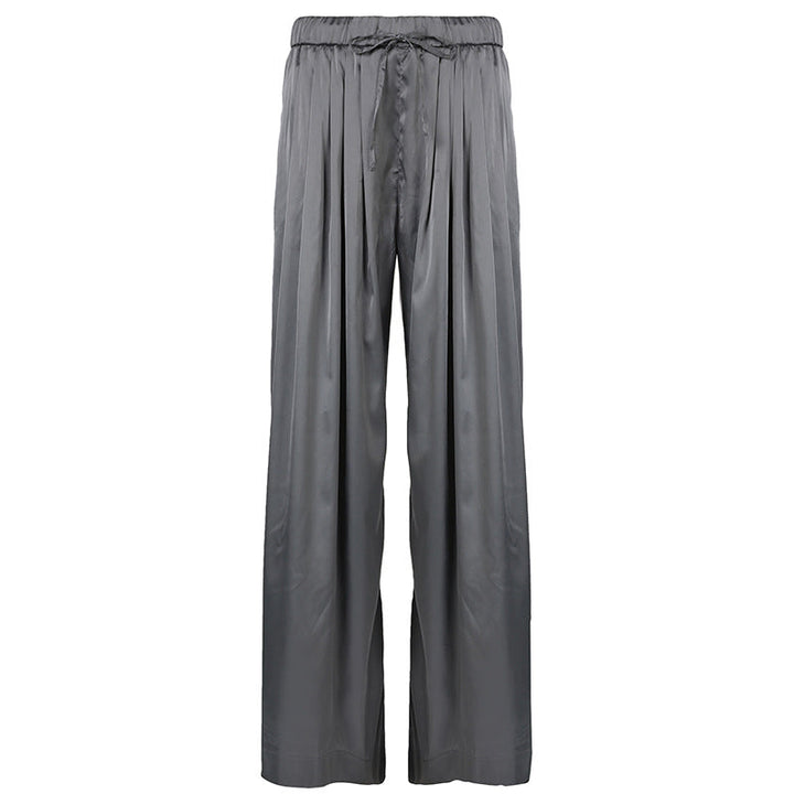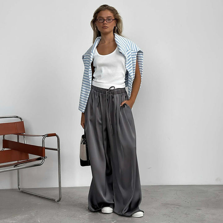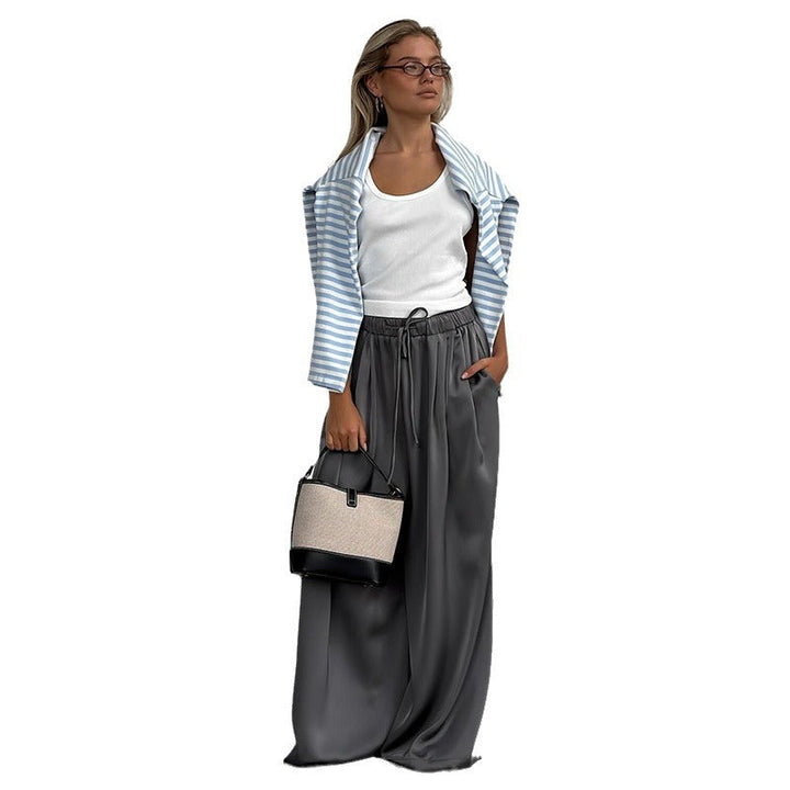 Fashion and simple temperament, relaxed satin casual pants, women's loose and thin high-waisted straps, drape pleated wide-leg pants