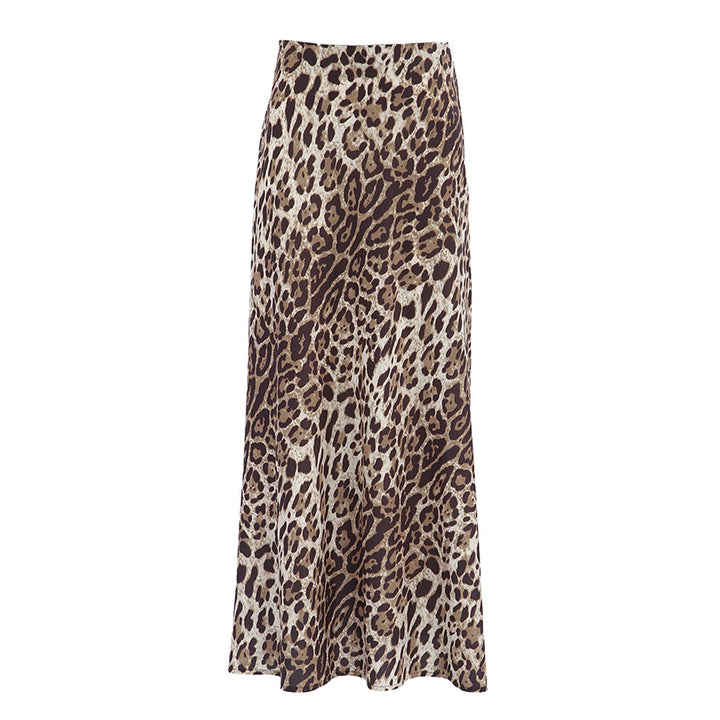 Fashion brown leopard print a word skirt women's 2024 autumn European and American street drape hot girl mopping long dress women's clothing