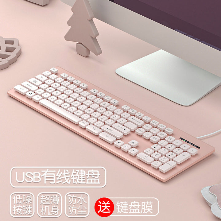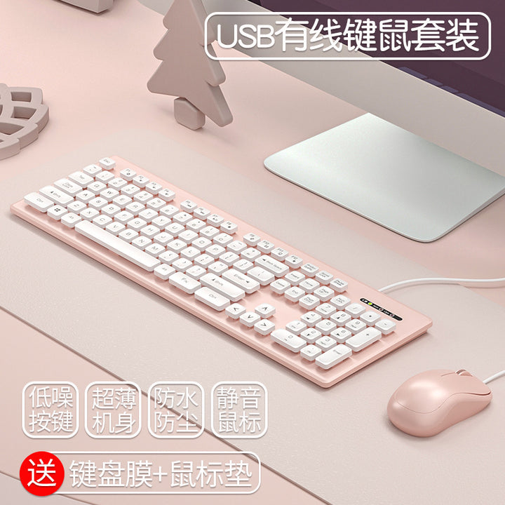 Fashion Chocolate Keyboard Wireless Wired Mouse Set Silent Notebook Electric Connection Office Home Girl Cute