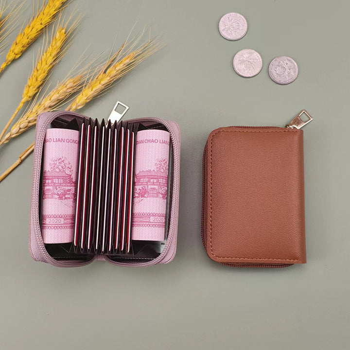 Fashion Organ Card Space Bag Multi-Card Space Card Page Women's Card Men's Card Clip Zipper Card Holder Credit Card Bag PU Leather