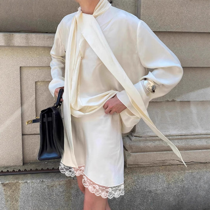 Fashion satin neck strap top short skirt two-piece set women's 2025 summer commuter French high-end skirt set