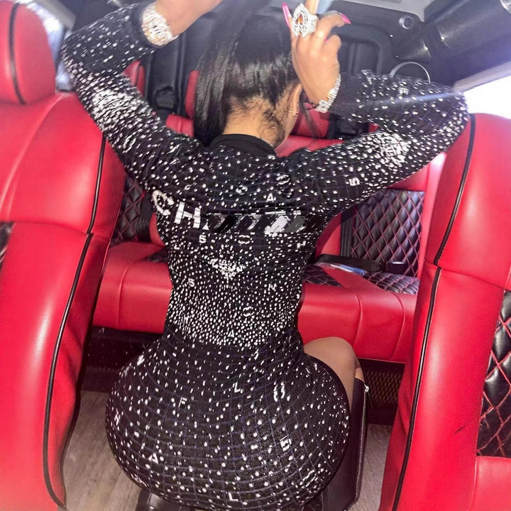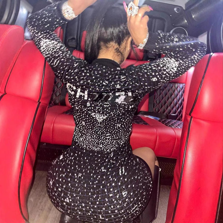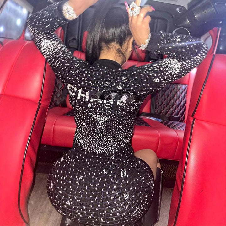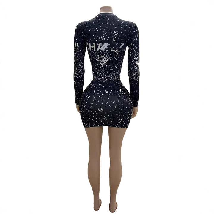 FC1270 European and American fashion specializes in digital printing, letter positioning, printing temperament, slim skirt set