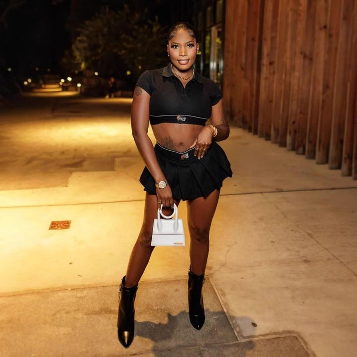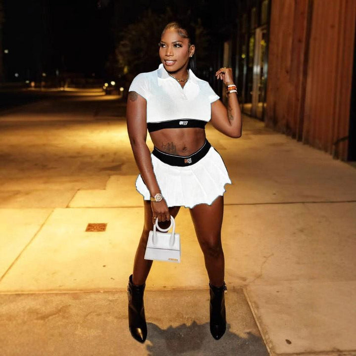 FC1320 European and American casual exposed button POLOT T-shirt short skirt set
