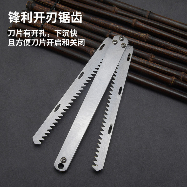 Fishing Mowing Double Effect Sawtooth Bladed Aquatic Knife Tools Fishing Supplies Folding Stainless Steel Cutting Knife Weed Cleaning