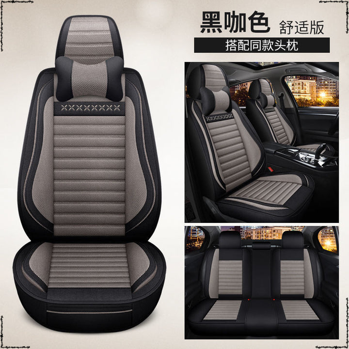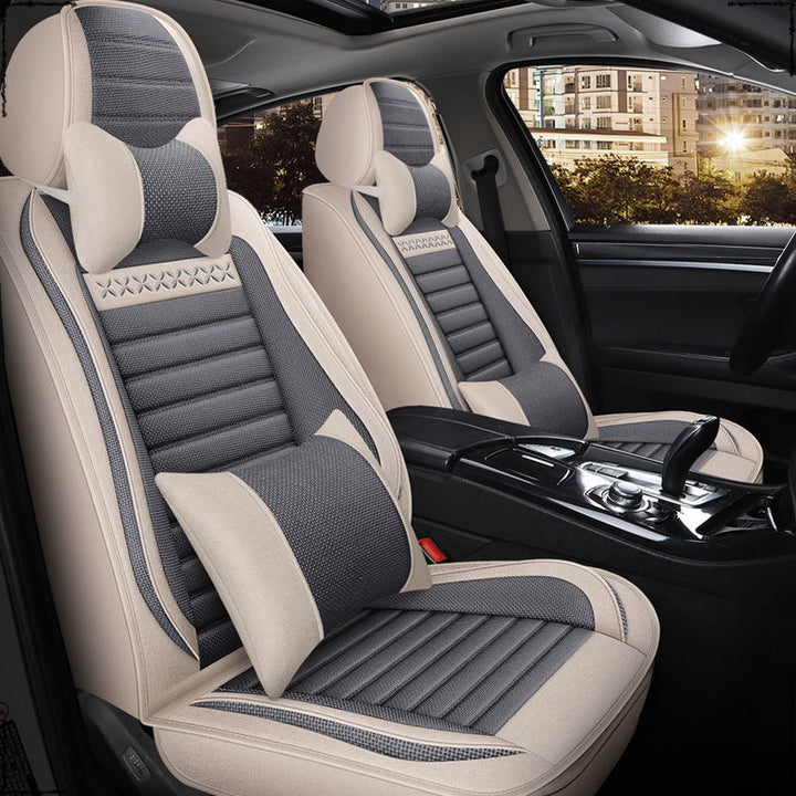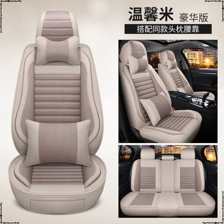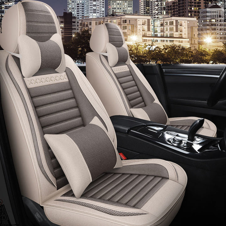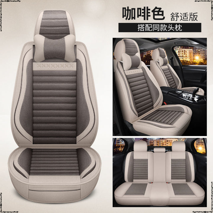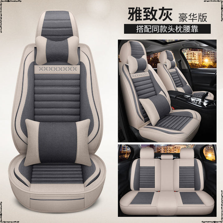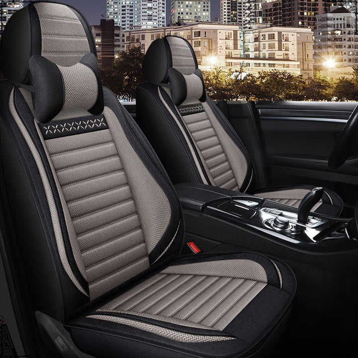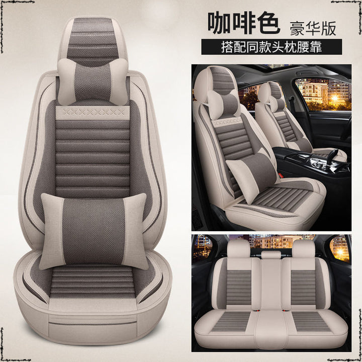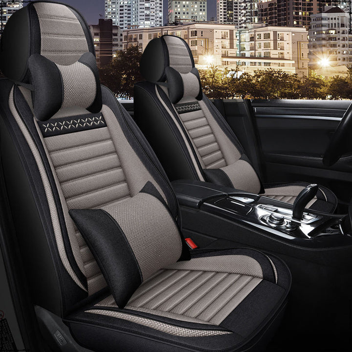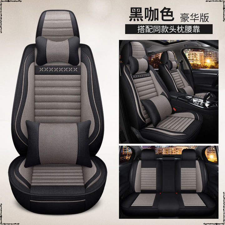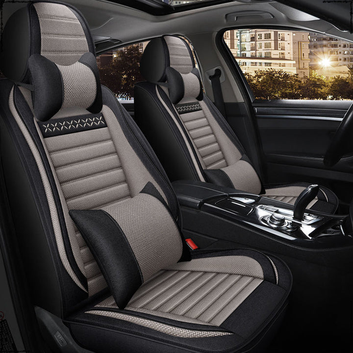 Five-seat fully enclosed car seat cushion cover, four-season universal seat cover, linen seat cover, fabric seat cushion, breathable seat cover, su...