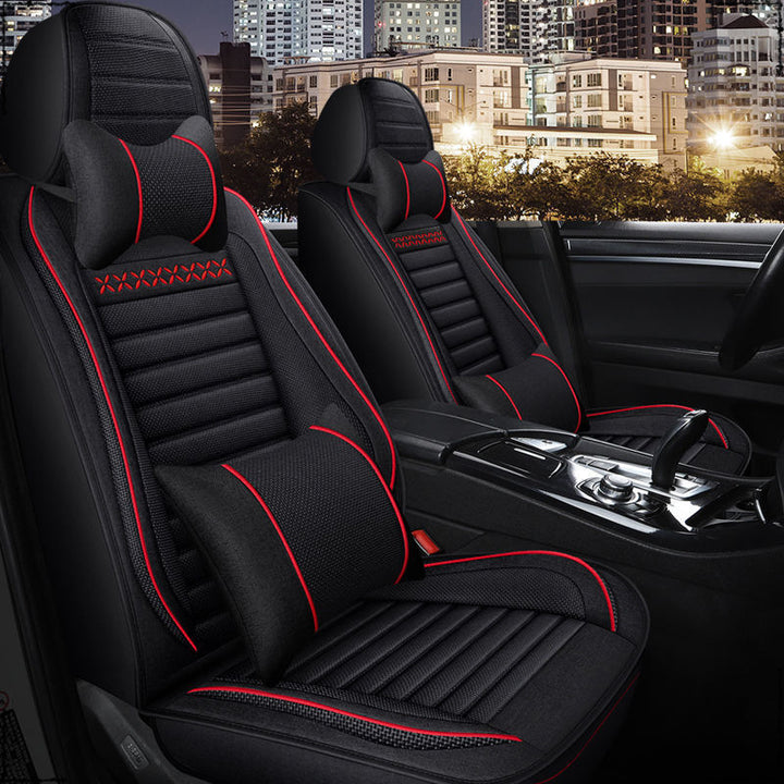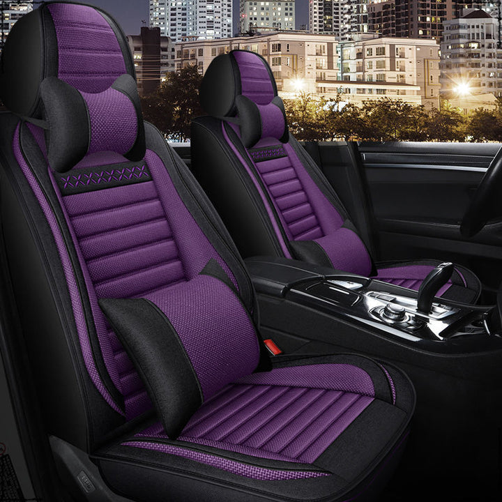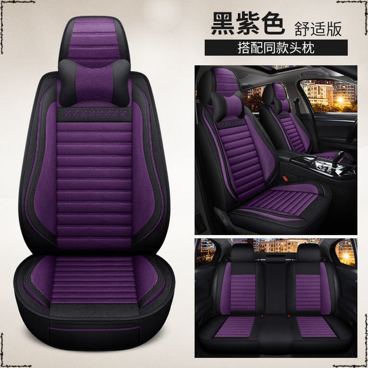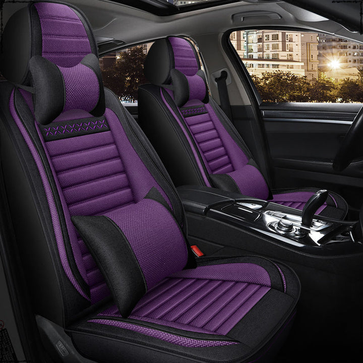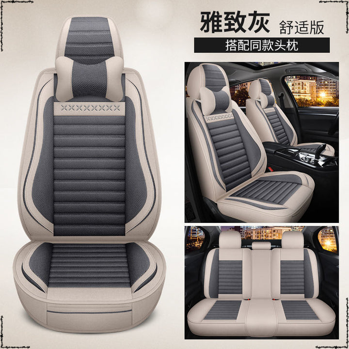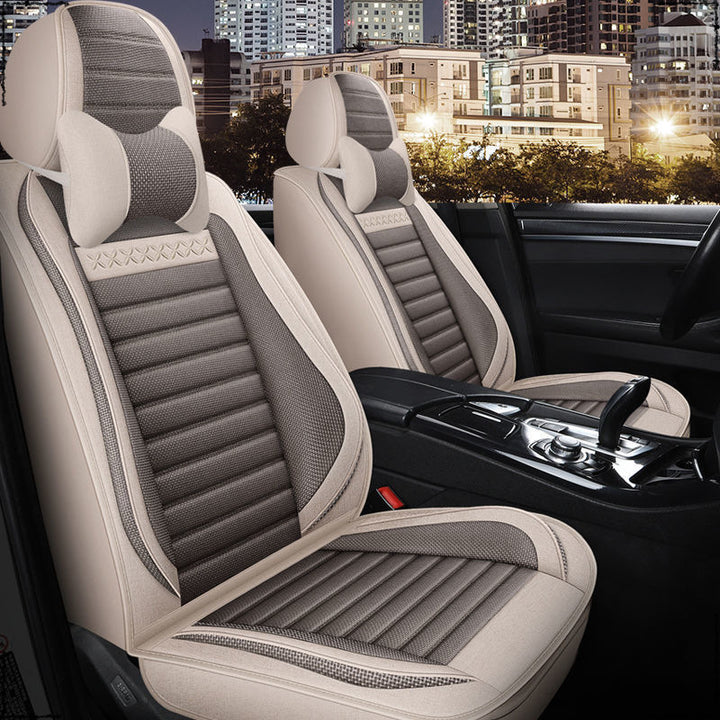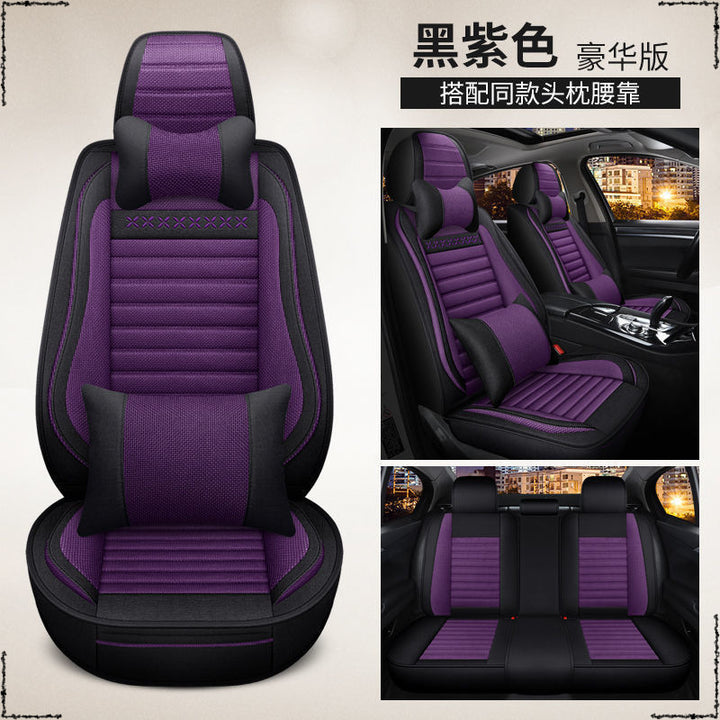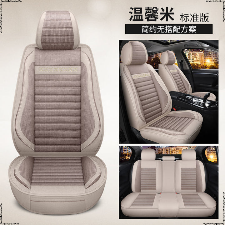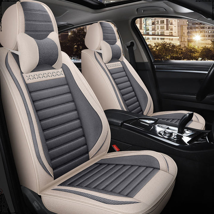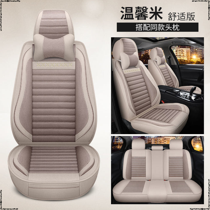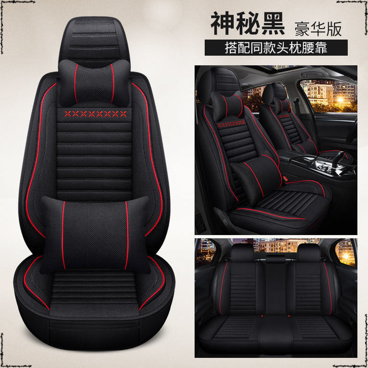Five-seat fully enclosed car seat cushion cover, four-season universal seat cover, linen seat cover, fabric seat cushion, breathable seat cover, su...