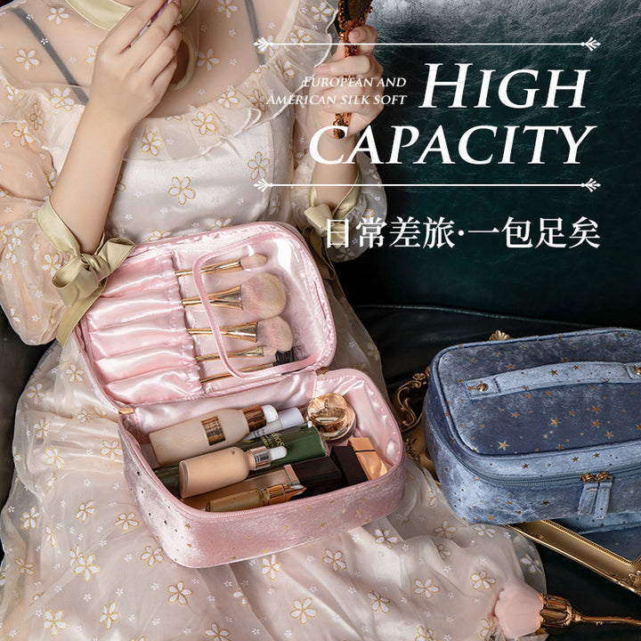 Flannel Star Cosmetic Bag Large Capacity Portable Cosmetics Storage Bag New Classical European Style Cosmetic Bag