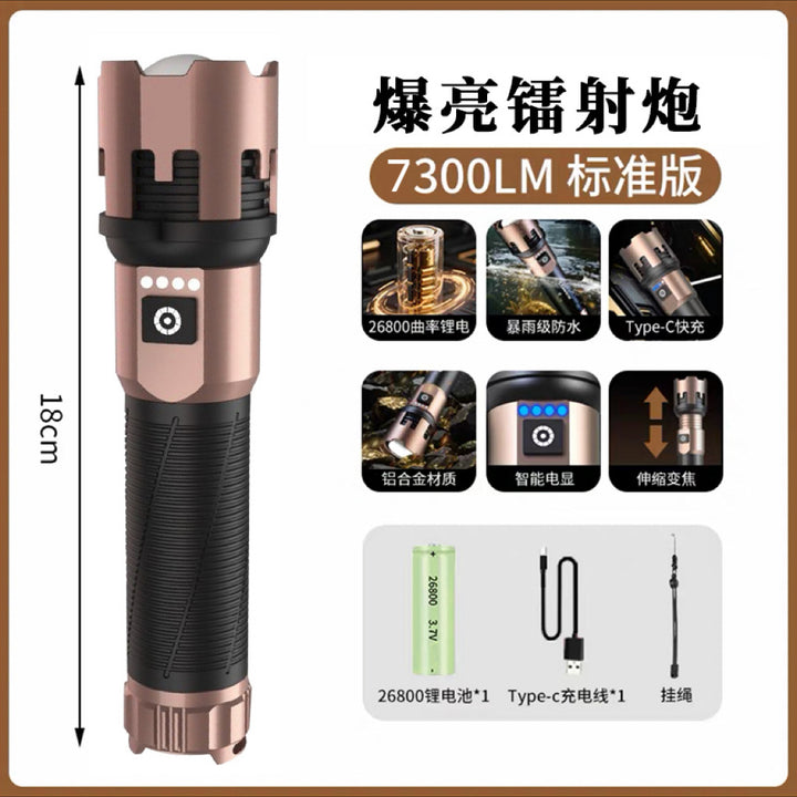 Flashlight Super bright strong light long-distance shooting aluminum alloy large-capacity lighting flashlight outdoor long-lasting battery life fla...