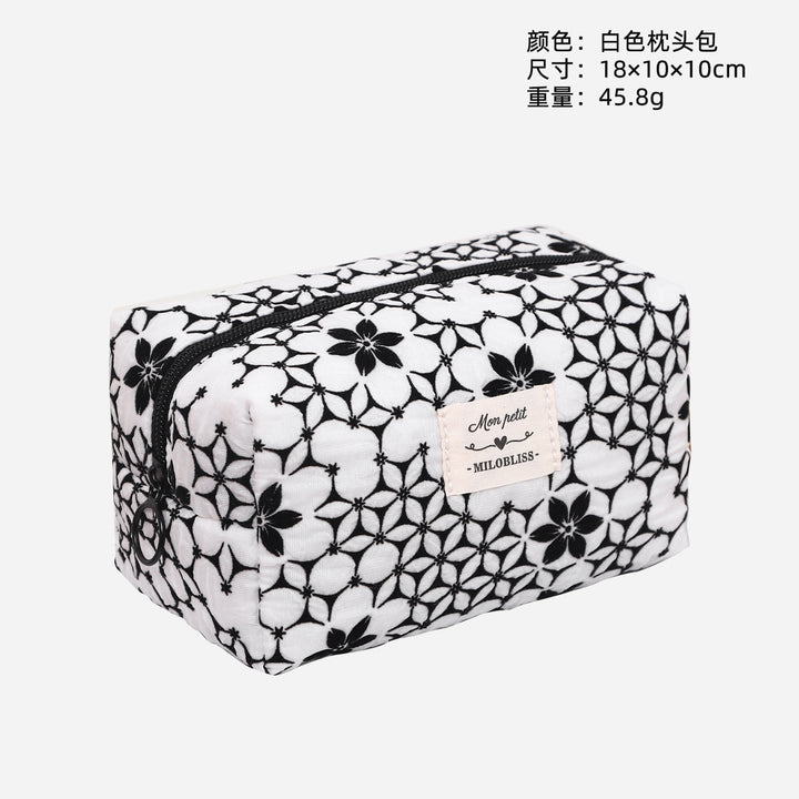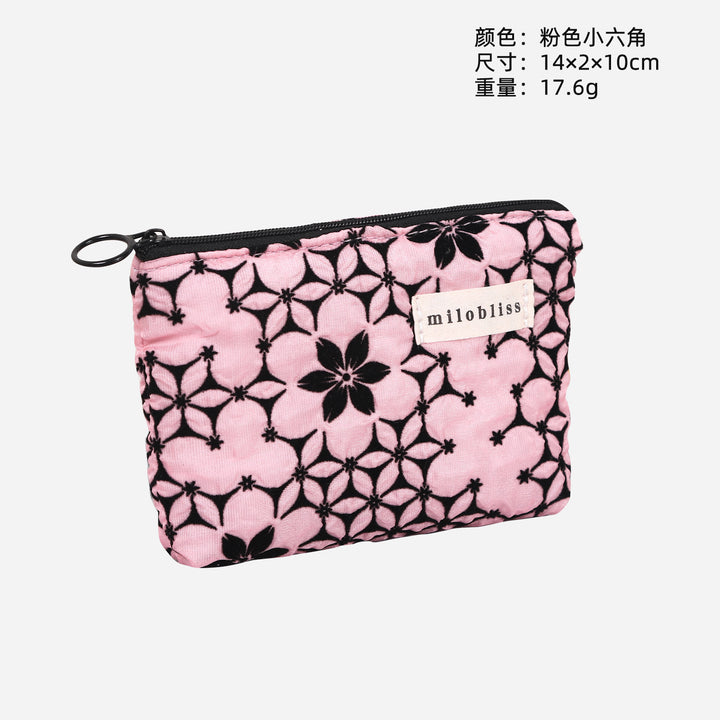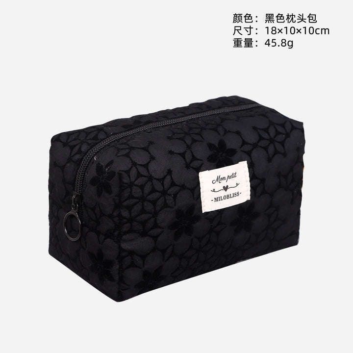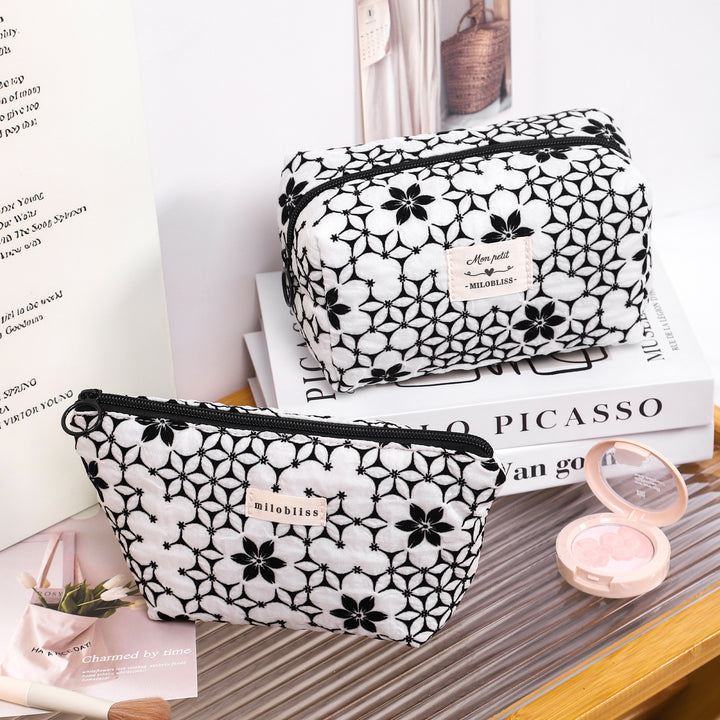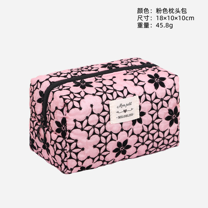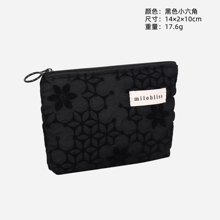Flocking printed fabric cosmetic bag large capacity portable portable storage bag simple zipper storage small square bag