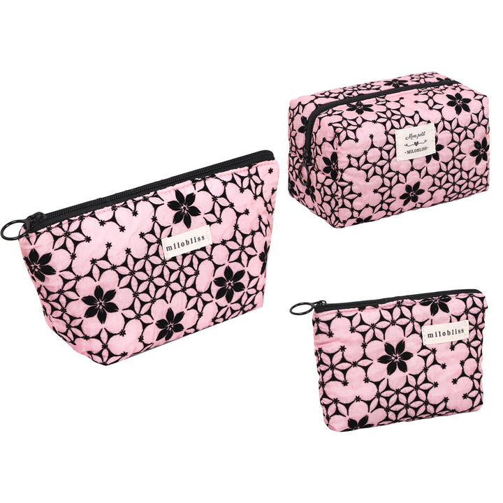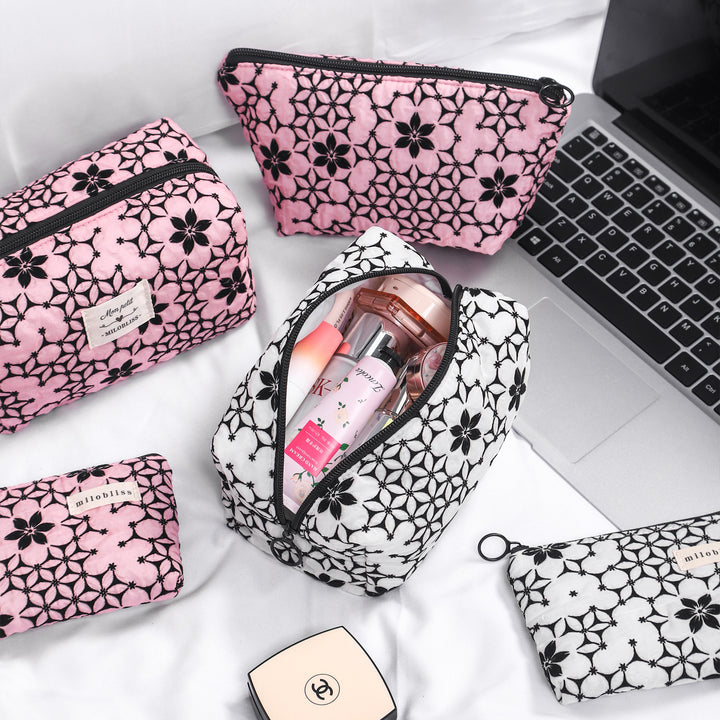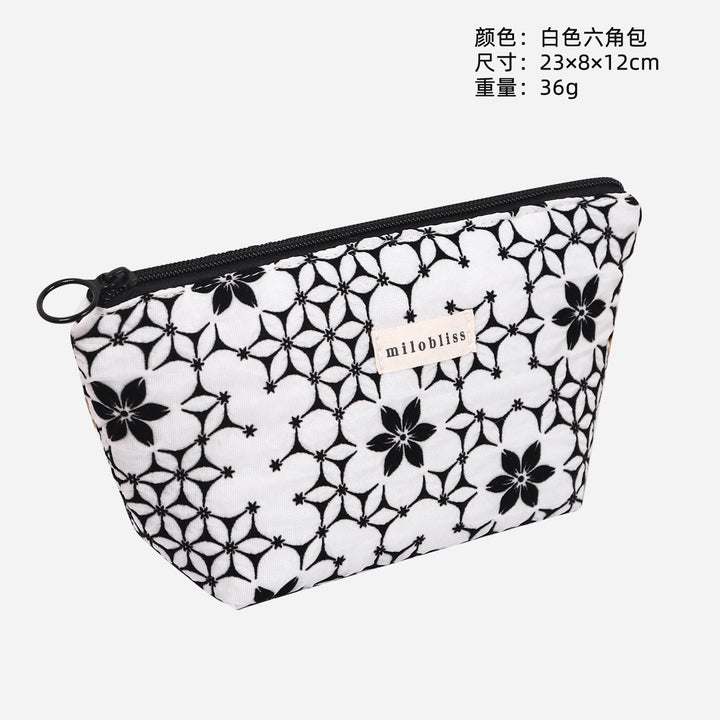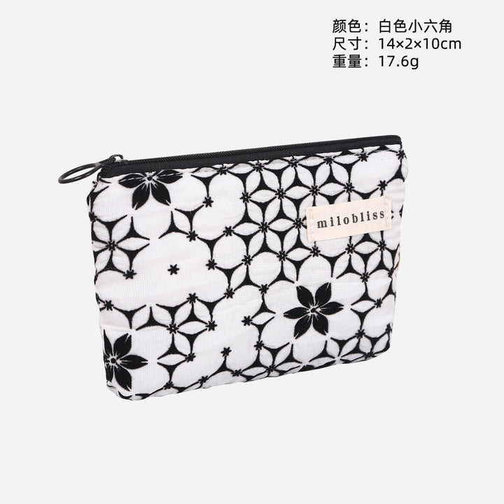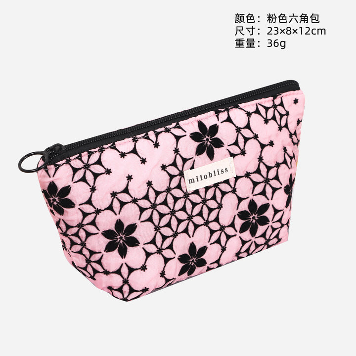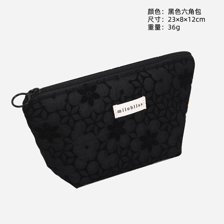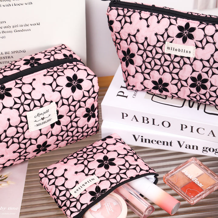 Flocking printed fabric cosmetic bag large capacity portable portable storage bag simple zipper storage small square bag