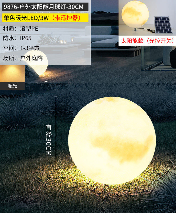 Outdoor lawn lamp diameter 22CM, Outdoor lawn lamp diameter 28CM, Outdoor lawn lamp diameter 32CM, Outdoor lawn lamp diameter 40CM, 户外月球灯直径15CM(接电款), 户外月球灯直径20CM(接电款), 外月球灯直径25CM(接电款), 户外月球灯直径25CM(太阳能款), 外月球灯直径30CM(接电款), 户外月球灯直径30CM(太阳能款), 户外月球灯直径40CM(接电款, 户外月球灯直径40CM(太阳能款), 户外月球灯直径50CM(接电款, 户外月球灯直径50CM(太阳能款), 户外月球灯直径60CM(接电款, 户外月球灯直径60CM(太阳能款), 户外月球灯直径80CM(太阳能款), Outdoor moon lamp diameter 100CM (solar model) |