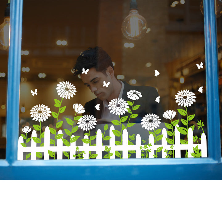 Flowers and plants skirting board sticker shop glass door window sticker cafe background wall decorative wall sticker SK7189ds