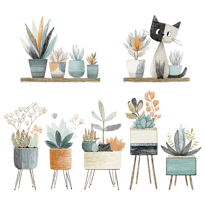 Flowers potted plants removable wall stickers mall window glass window stickers baffle potted plant paintings delivery 69149