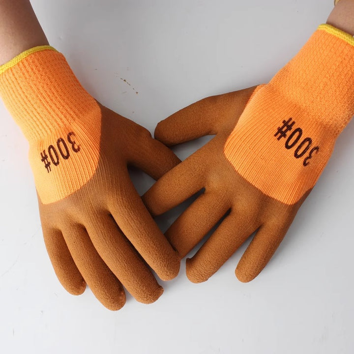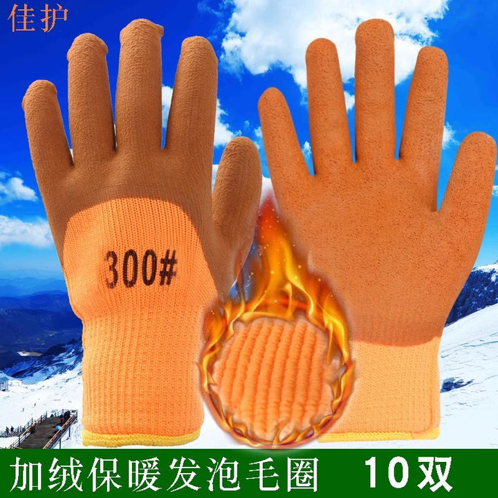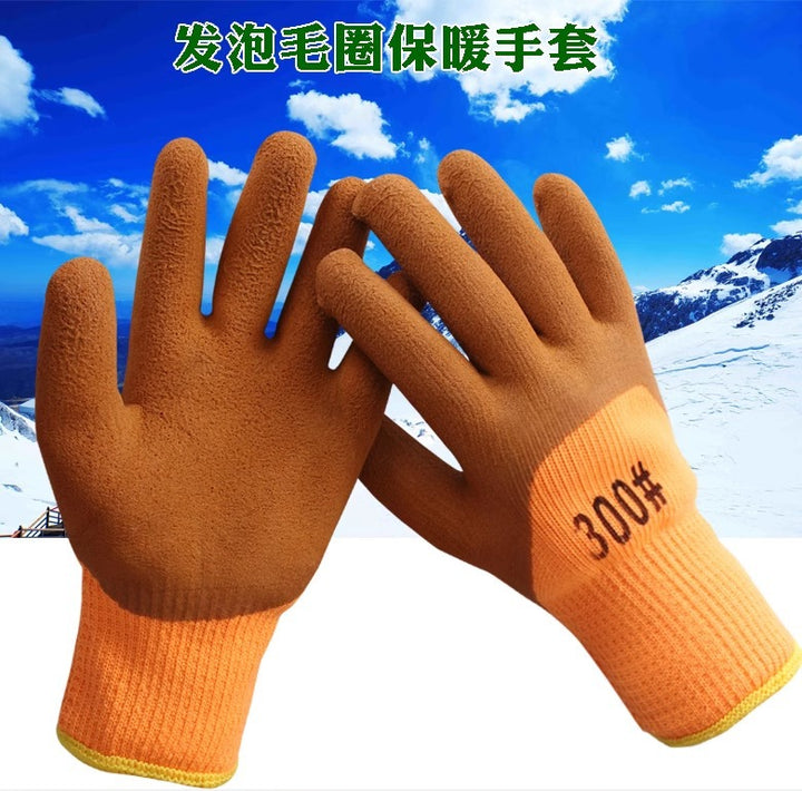 Foam terry cold-proof rubber waterproof and antifreeze hanging glue labor protection gloves winter thickened warm and non-slip velvet gloves