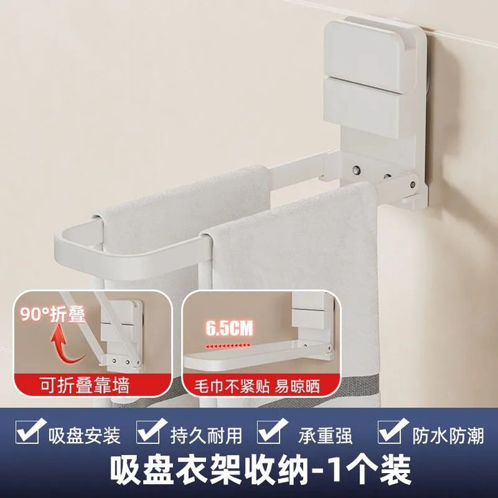 Foldable suction cup towel hanging rod toilet no punching bathroom artifact multi-functional wall hanging storage drying bath towel