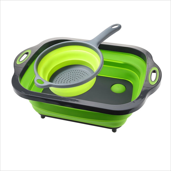 Folding basin set, kitchen drain basket, plastic storage basket, retractable household fruit basket, camping tools cross-border