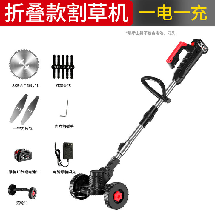 Folding electric lawn mower lithium battery lawn mower multi-functional household handheld lithium battery lawn mower rechargeable lawn mowing arti...