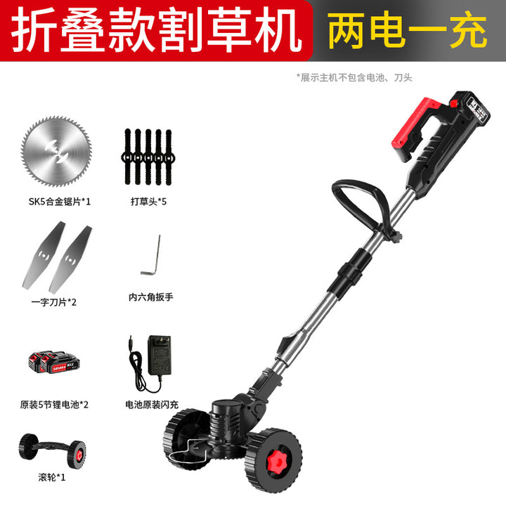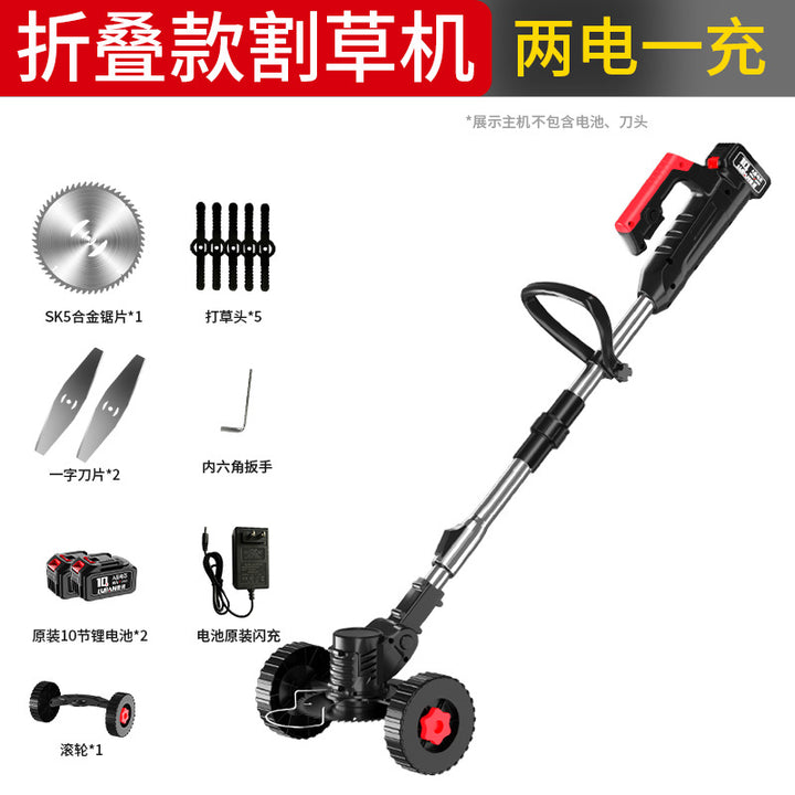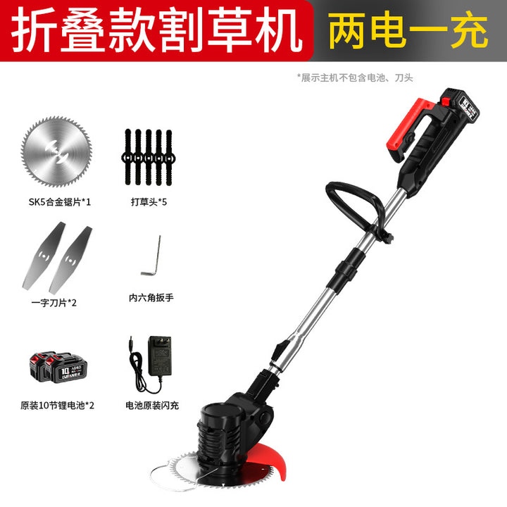 Folding electric lawn mower lithium battery lawn mower multi-functional household handheld lithium battery lawn mower rechargeable lawn mowing arti...