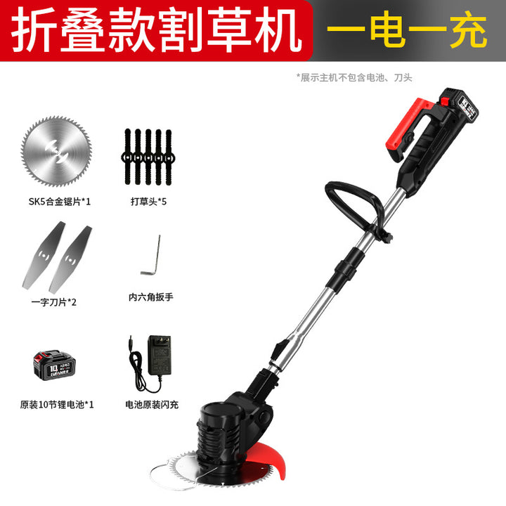 Folding electric lawn mower lithium battery lawn mower multi-functional household handheld lithium battery lawn mower rechargeable lawn mowing arti...