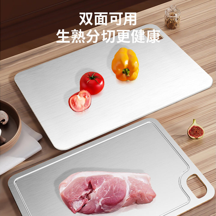 Food grade stainless steel cutting board groove antibacterial and mildew-proof chopping board, kitchen double-sided can be used to cut vegetables a...