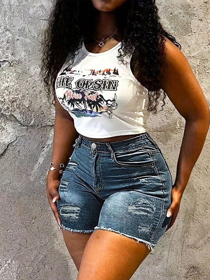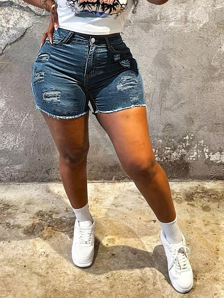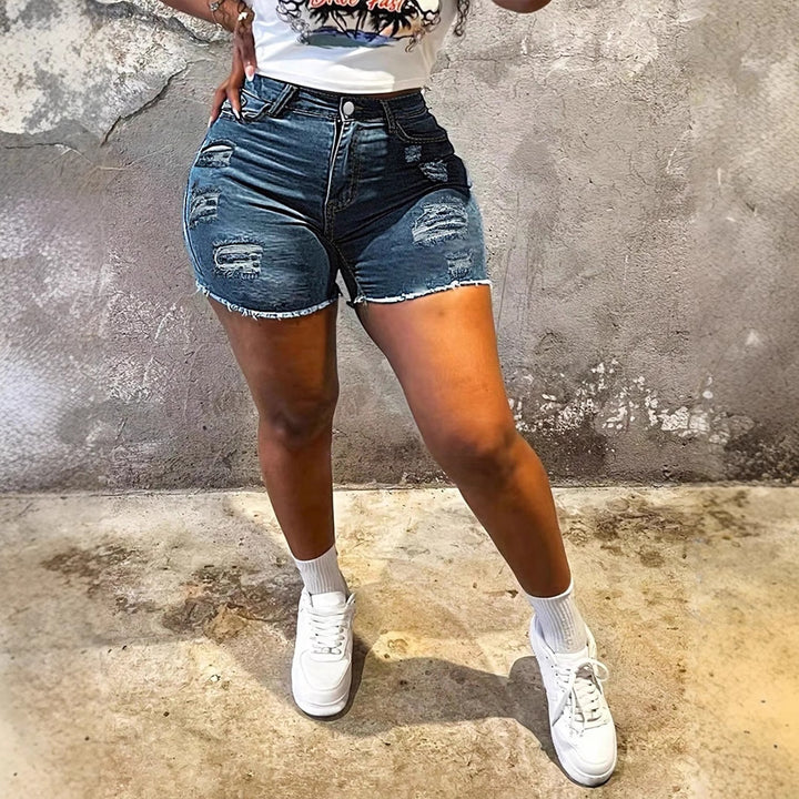 foreign Europe, America and supply hole slim denim shorts women trend fashion wear