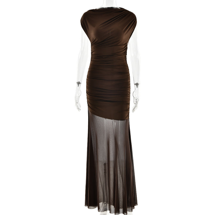 Foreign Trade 2025 Autumn New Shrinkle Women's Sleeveless Long Dress Cross-border Fashion Sexy Hip Wrap Dress