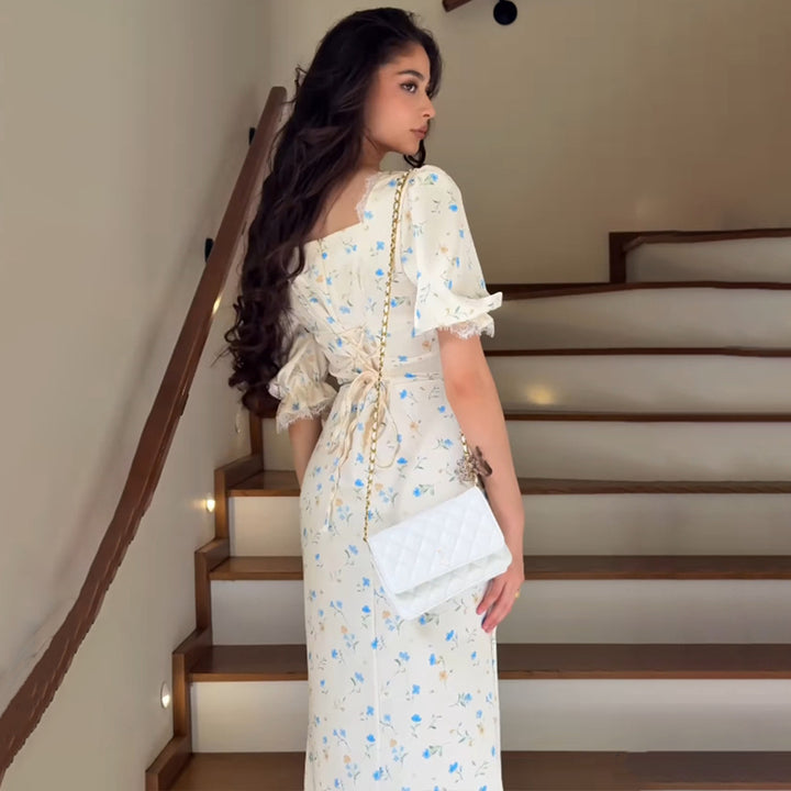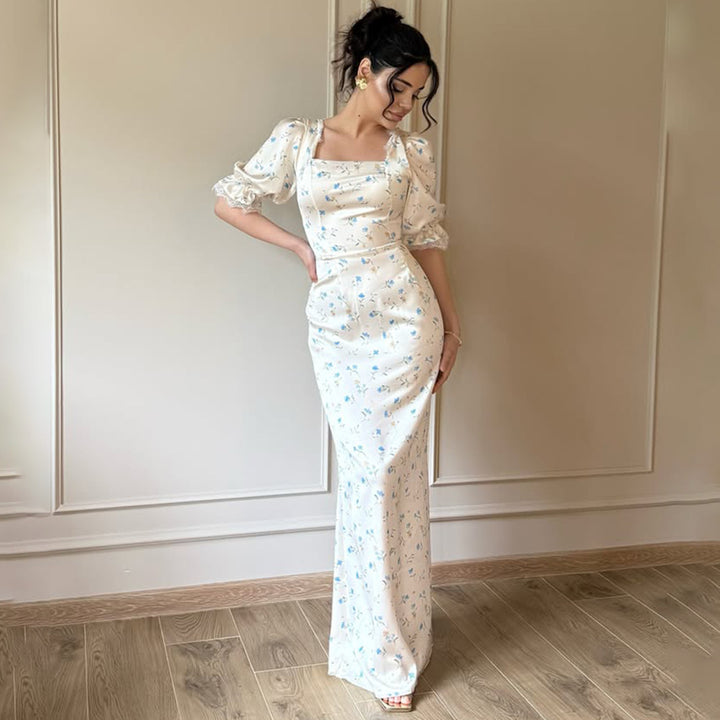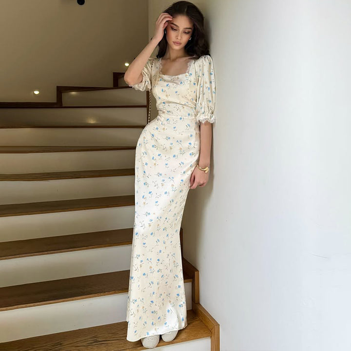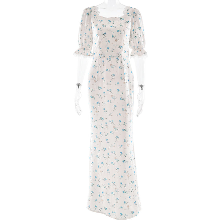 Foreign Trade 2025 Fashion Temperament Satin Printed Women's Long Dress Cross-border Sexy Half-Sleeve Hip Wrap Dress